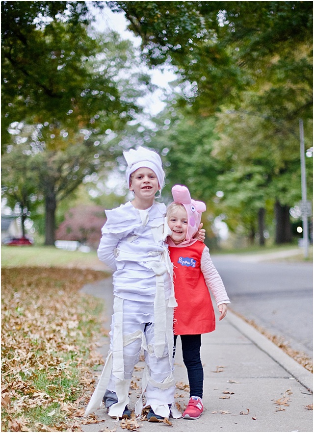 We had a cold Halloween this year - Brrrr! But thankfully, both kid's costumes were adaptable. And actually, Liam's would have been way too warm if it were a warmer day.